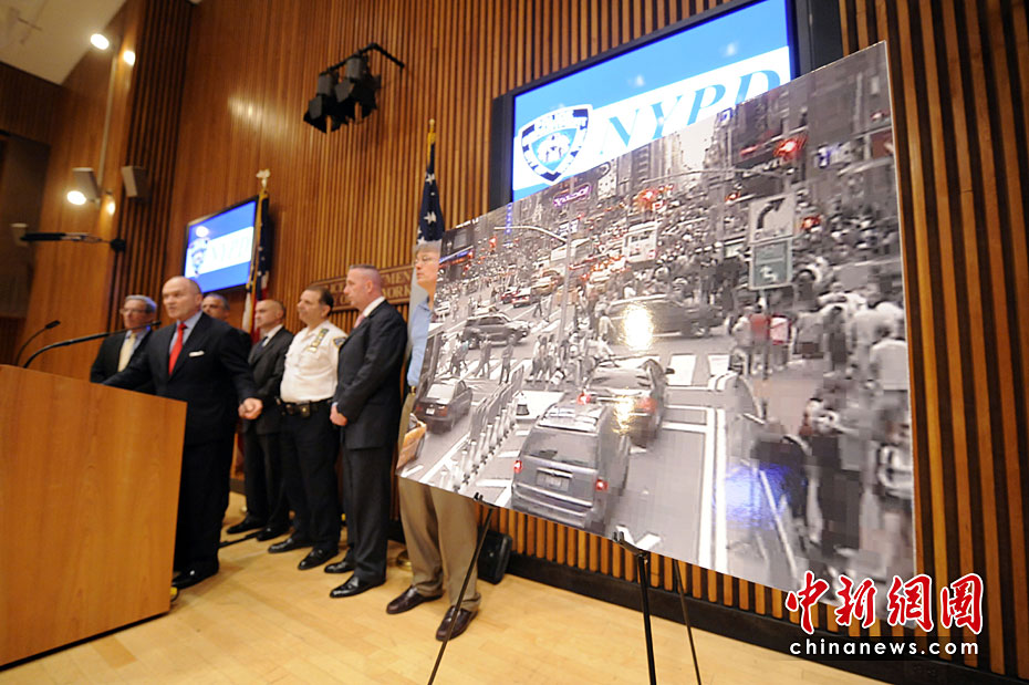 美國當地時間5月2日,紐約市警察局長凱利在記者會上公布了紐約時代廣場爆炸事件現場照片。同時他還指出,沒有證據顯示巴基斯坦塔利班策劃了1日傍晚發(fā)生在紐約時報廣場上的未遂汽車炸彈襲擊事件。圖片來源:中國新聞網