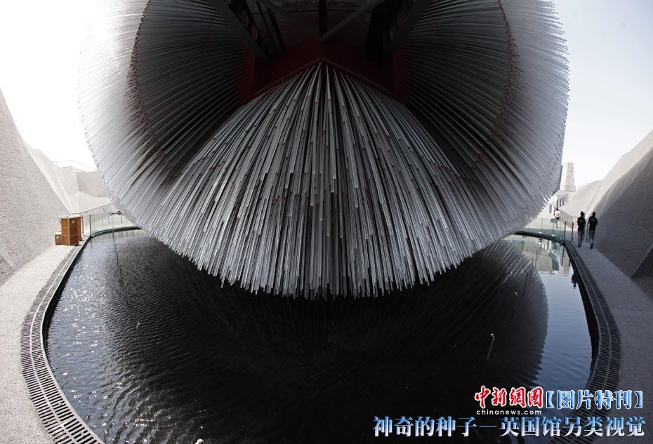 上海世博園開園才數日,自號“種子圣殿”的英國館已成人氣最旺場館之一。該館由6萬根亞克力桿巧妙構成,隨風搖動,頗為新奇。其每根桿子里都含有植物種子。中新社記者 盛佳鵬 攝