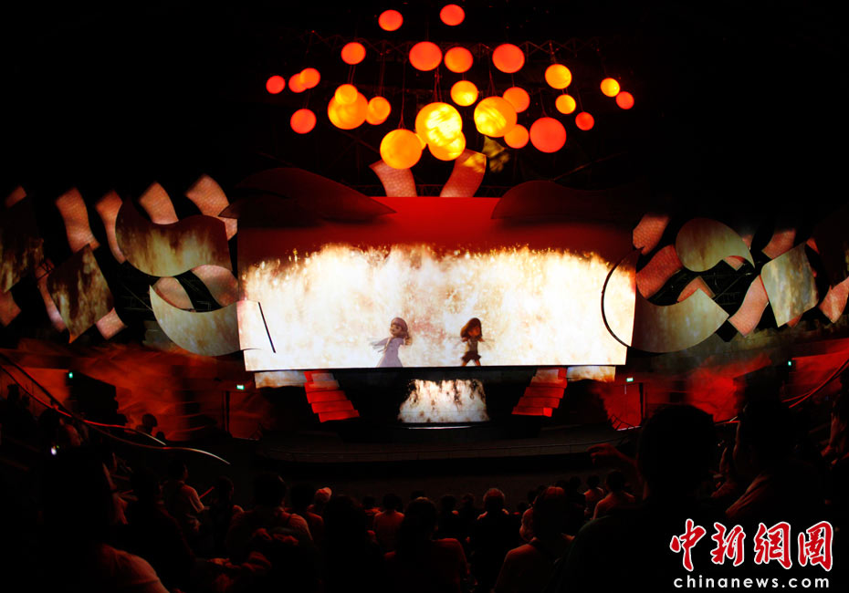 2010年5月4日,上海世博園區(qū)阿聯(lián)酋館內(nèi),絢麗的影院、精彩的影片將游客引入一段夢想之旅。中新社發(fā) 盛佳鵬 攝