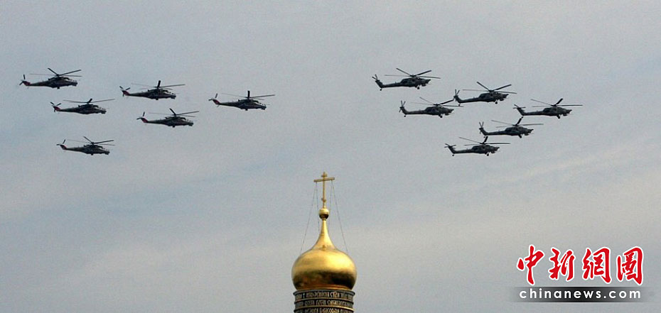 當(dāng)?shù)貢r(shí)間5月4日,在俄羅斯首都莫斯科,參加彩排的戰(zhàn)機(jī)編隊(duì)飛過(guò)紅場(chǎng)上空。俄羅斯將于5月9日隆重紀(jì)念衛(wèi)國(guó)戰(zhàn)爭(zhēng)勝利65周年。圖片來(lái)源:中國(guó)新聞網(wǎng)