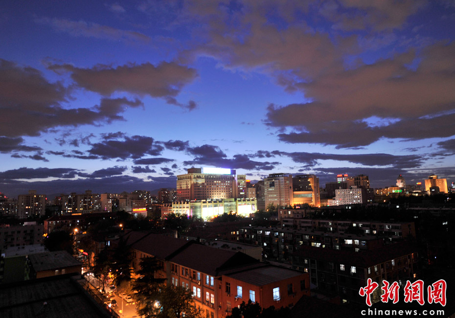 5月5日立夏,京城降雨今晨剛剛結(jié)束,霧氣伺機(jī)又起。傍晚時(shí)分,隨著四級北風(fēng)的到來,京城天氣逐漸轉(zhuǎn)晴,霧氣慢慢消散天空彤云密布夜色瑰麗。中新網(wǎng)記者 金碩 攝