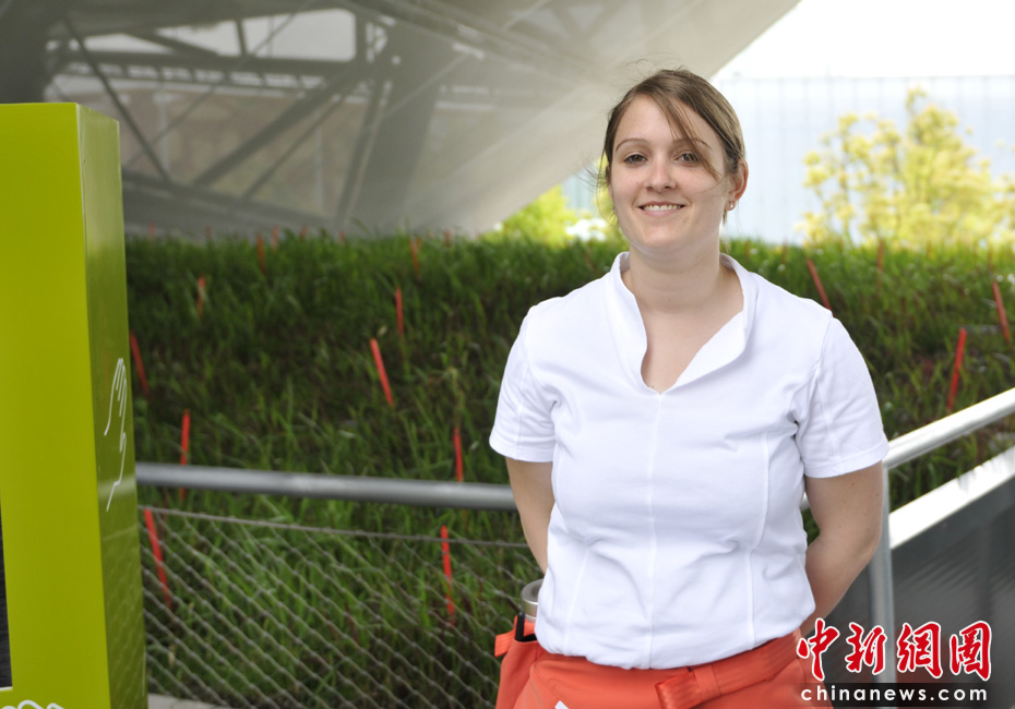 美麗的德國館工作人員,她們都能用一些簡單的漢語與中國游客交流。中新網(wǎng)記者 王紅綱 攝