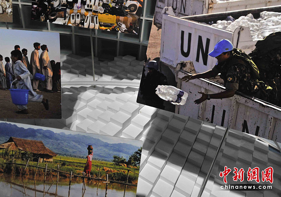 一所藍(lán)色的簡樸平房,在5月開園的上海世博會大道邊上,極不顯眼。但是,聯(lián)合國聯(lián)合館的鮮明會標(biāo),特別吸引人。這個展館集中了世界衛(wèi)生組織、世界銀行和聯(lián)合國的兒童基金會、糧農(nóng)組織、教科文組織等22個機構(gòu)。圖片來源:中國新聞網(wǎng) 賈國榮 攝