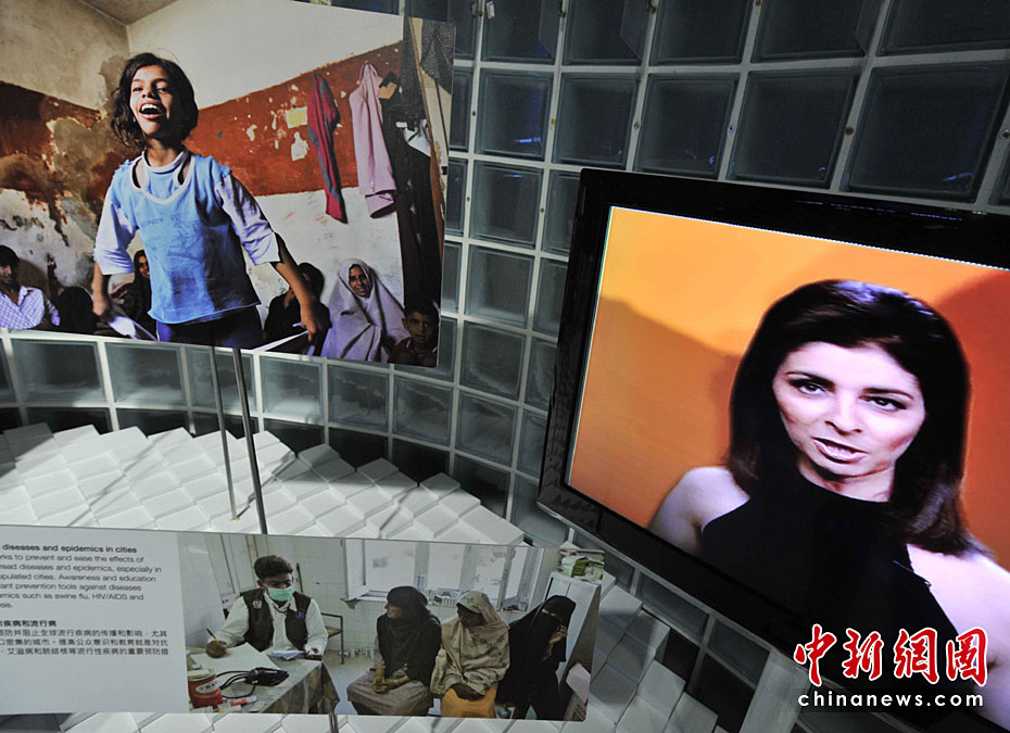 一所藍(lán)色的簡樸平房,在5月開園的上海世博會(huì)大道邊上,極不顯眼。但是,聯(lián)合國聯(lián)合館的鮮明會(huì)標(biāo),特別吸引人。這個(gè)展館集中了世界衛(wèi)生組織、世界銀行和聯(lián)合國的兒童基金會(huì)、糧農(nóng)組織、教科文組織等22個(gè)機(jī)構(gòu)。圖片來源:中國新聞網(wǎng) 賈國榮 攝