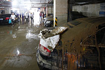 5月10日,廣州中?党堑叵峦\噲(chǎng)遭水浸的汽車終于重新出水。受5月7日的大雨影響,廣州市東圃地區(qū)的中海康城的地下停車庫(kù)發(fā)生嚴(yán)重的水浸。經(jīng)過(guò)4天日夜不斷地抽水,5月10號(hào)上午,地下車庫(kù)里面的水終于干了。4天來(lái)一直轟鳴的水泵昨日終于停了下來(lái)。早晨7時(shí)許,眾車主陸續(xù)來(lái)到車庫(kù),370多臺(tái)車橫七豎八排開,幾只塘虱在淤泥里挪動(dòng)著。在拖車出庫(kù)的時(shí)候,不少車主淚流滿面。