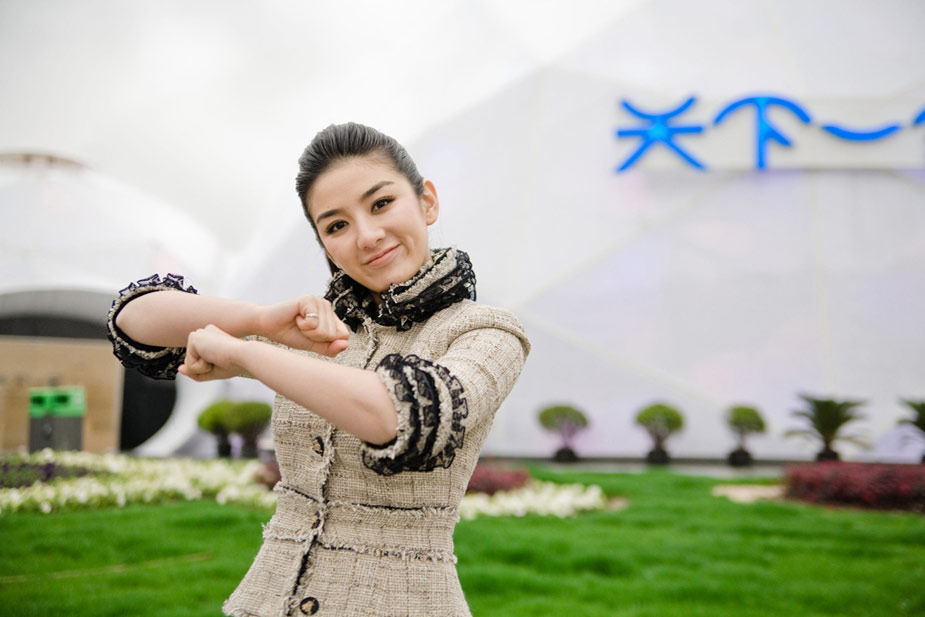 黃奕示范世博標準手勢演繹“EXPO”