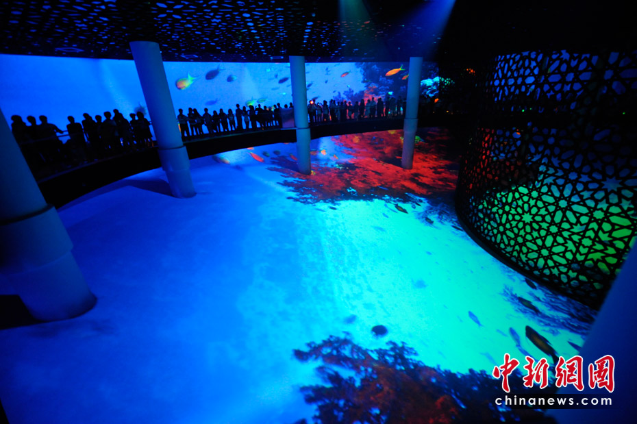 在世博會(huì)眾多的展館中,各類的大屏幕展示讓參觀者有如身臨其境,也讓游客們充分感受不同國(guó)家、不同地域的文化特色及先進(jìn)科技理念,如幻似夢(mèng)的屏幕光影也成為本次世博的最佳看點(diǎn)。沙特館內(nèi)的1600平方米的4塊大屏幕相當(dāng)于兩個(gè)室內(nèi)足球場(chǎng),讓參觀者體驗(yàn)“人影合一”的神奇感受。參觀者走上傳送帶緩緩向前,仿佛乘坐“神奇的飛毯”在沙漠中翱翔。中新社記者 廖攀 攝