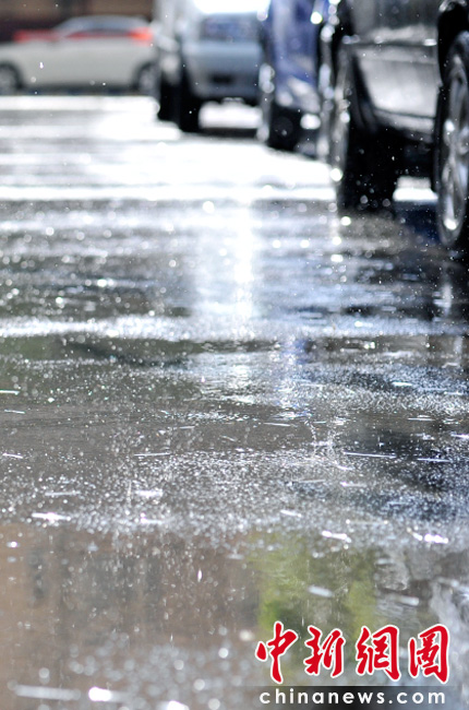 5月18日16時(shí)許,伴隨陣陣?yán)茁暰┏峭唤荡笥辏涤赀^(guò)后東部天空依然籠罩著烏云,而西邊卻已放晴。中新網(wǎng)記者 金碩 攝