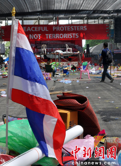 泰國紅衫軍領導人乍都蓬19日下午1時決定,向曼谷警方投降。同時向警方投降的還包括納塔兀、素蓬、翁醫(yī)師等紅衫軍核心領導人。紅衫軍領導人納塔兀責其支持者宣布,結束紅衫軍已持續(xù)了兩個多月的集會示威行動。圖片來源:中國新聞網(wǎng)