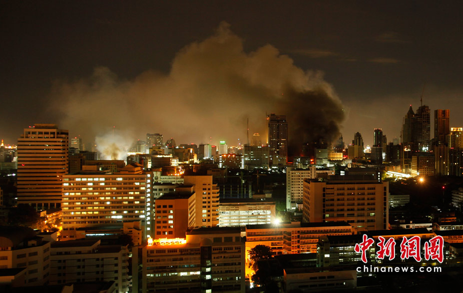 泰國(guó)軍方19日清場(chǎng),希望將陷入內(nèi)戰(zhàn)邊緣的曼谷拯救出來,雖然紅衫軍節(jié)節(jié)敗退,但有激進(jìn)分子未肯罷休,四處放火,電視臺(tái)、股票交易所、電力公司、幾間銀行、商場(chǎng)戲院都遭殃,商場(chǎng)和便利店亦成為搶掠目標(biāo)。據(jù)報(bào)曼谷有27處地方起火,泰國(guó)最大的商場(chǎng)Central World、Siam Square和Siam Paragon三大購(gòu)物中心被縱火,其中Central World燒通頂,據(jù)報(bào)快將倒塌。