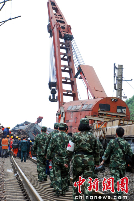 5月23日凌晨2時(shí)10分,滬昆鐵路江西東鄉(xiāng)段發(fā)生一起客運(yùn)列車脫線事故,截至上午9時(shí),已有10人遇難,車內(nèi)乘客全部被轉(zhuǎn)移,現(xiàn)場(chǎng)救援工作正在緊張進(jìn)行。事故發(fā)生后,南京軍區(qū)武警,江西省消防、交警,中鐵電氣化局、醫(yī)療等部門立即組織近萬名人員參與搶險(xiǎn)救災(zāi),目前現(xiàn)場(chǎng)已有10余臺(tái)挖土機(jī)和吊車參與救援。中新社發(fā) 劉占昆 攝