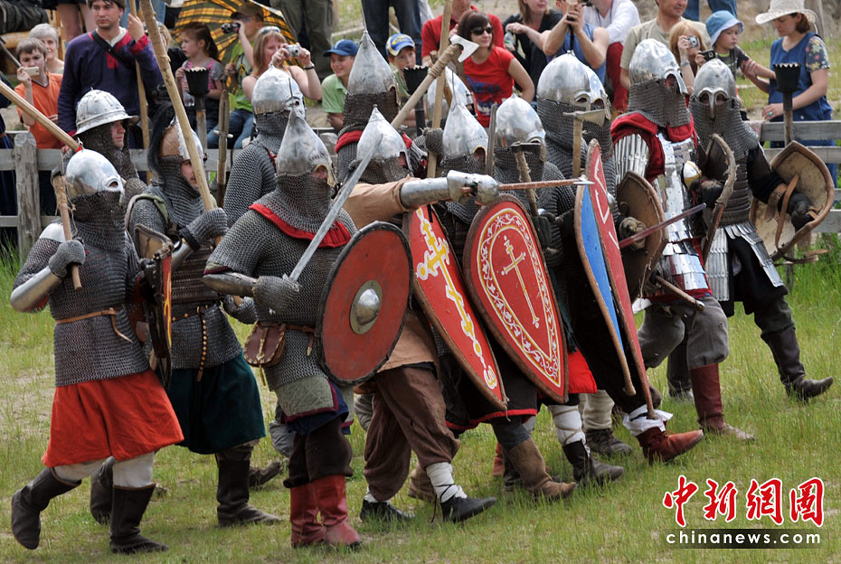 5月22日,在烏克蘭基輔郊區(qū)舉行的基輔羅斯節(jié)表演上,演出者再現(xiàn)了十三世紀(jì)的基輔羅斯戰(zhàn)役歷史場面。圖片來源:中國新聞網(wǎng)