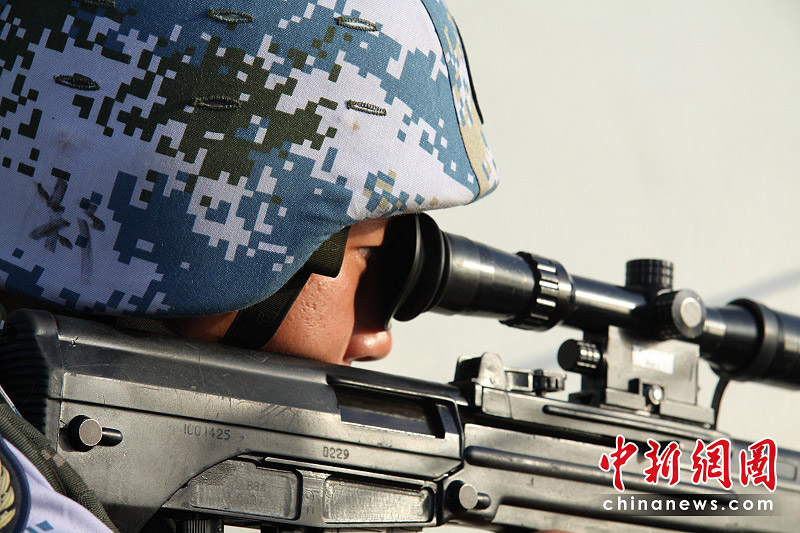 5月5日,特戰(zhàn)隊員在進行瞄準。胡軍 攝