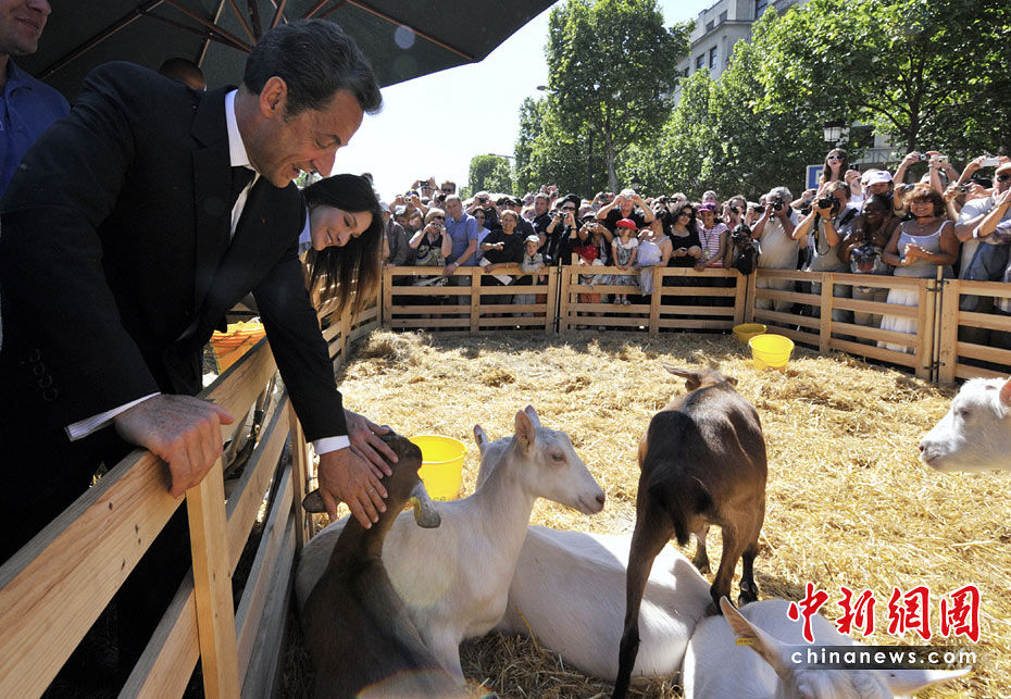 5月24日,法國總統(tǒng)薩科齊和妻子布呂尼參觀在法國巴黎舉行的“自然首都”展。該項展覽是由街頭藝術家加德·魏爾聯手法國“青年農民協會”和林業(yè)協會共同發(fā)起的的,將百余種農作物、樹木和動物“齊聚”法國首都巴黎的香榭麗舍大街,令這條“香街”變身“綠色的自然世界”。圖片來源:中國新聞網