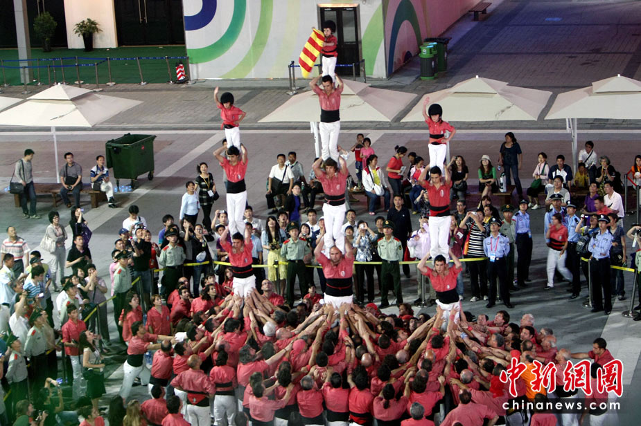 5月25日,西班牙“人塔”在上海世博會(huì)歐洲廣場上逐層壘起,為西班牙加泰羅尼亞周助興。“疊人塔”(HUMAN WALL),是西班牙加泰羅尼亞地區(qū)最具傳統(tǒng)特色的民俗節(jié)慶活動(dòng),起源于18世紀(jì)末加泰羅尼亞南部的巴爾斯。后來,“疊人塔”活動(dòng)逐漸在加泰羅尼亞其他地區(qū)流行,進(jìn)而風(fēng)靡整個(gè)西班牙。中新社發(fā) 杜洋 攝