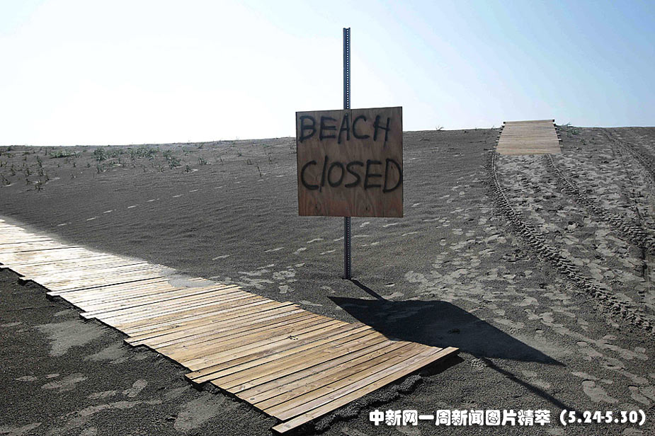 照片攝于美國路易斯安那州發(fā)現(xiàn)之島,受墨西哥灣原油泄漏事故的影響,該島的海灘已被關(guān)閉。
