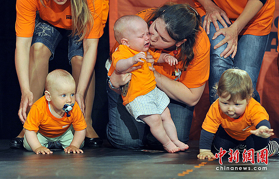 當(dāng)?shù)貢r(shí)間5月31日,烏克蘭基輔舉行了寶寶爬行大賽。數(shù)十名嬰兒在母親的鼓勵(lì)下奮力向4米外的終點(diǎn)爬去。圖片來源:中國(guó)新聞網(wǎng)