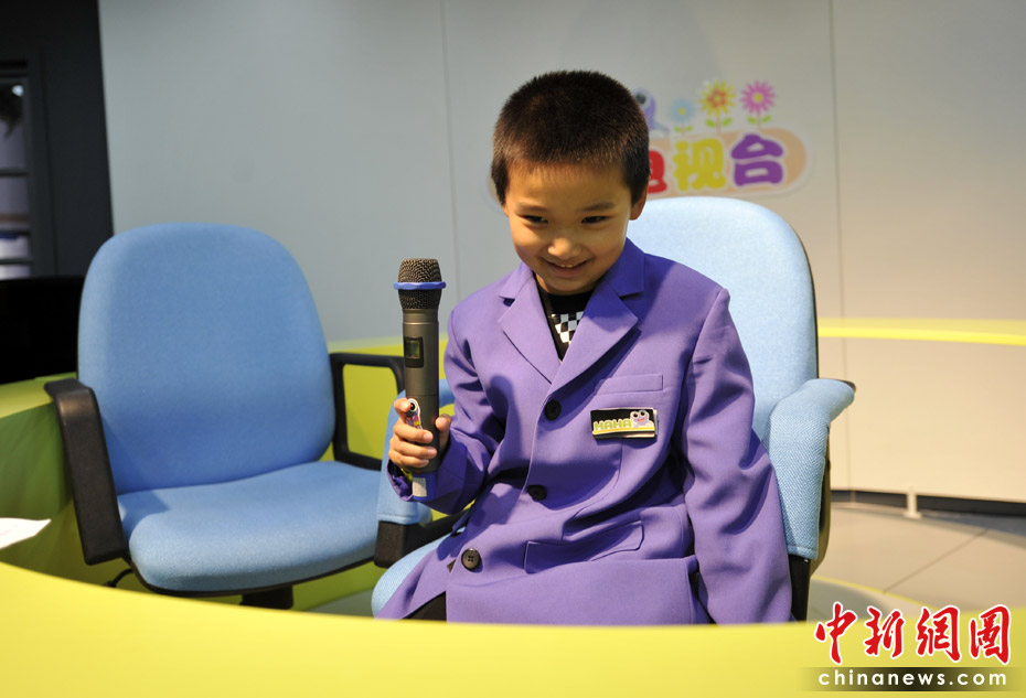 圖為孩子在體驗做電視臺主持人。 中新網(wǎng)記者 王紅綱 攝