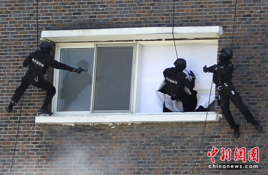 2010年6月1日,在韓國(guó)首爾,首爾防衛(wèi)部隊(duì)進(jìn)行了大型反恐軍事演練。