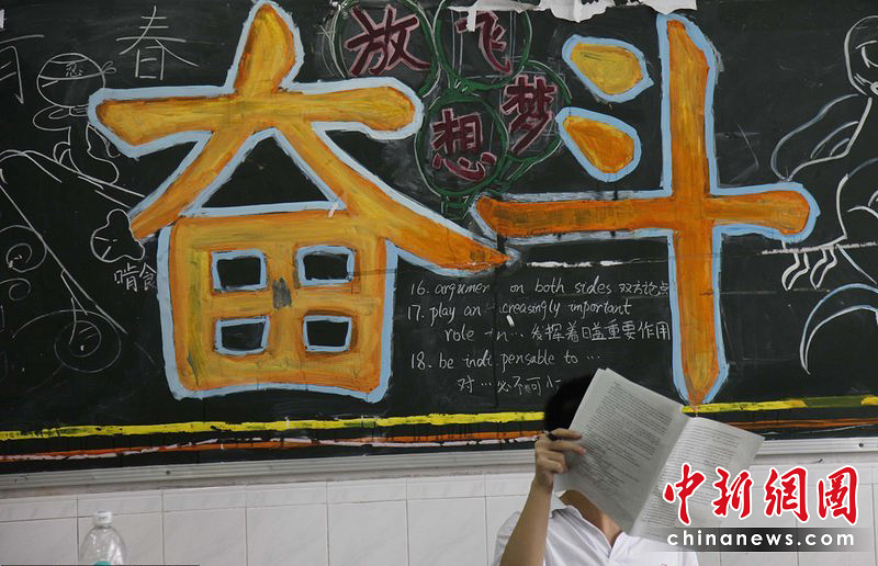 6月1日,廣州市第四十七中學(xué)高三(一)班,高考日益臨近,黑板上斗大的“奮斗”兩個字就是一面警鐘,讓同學(xué)們不敢懈怠。夏宇/CFP