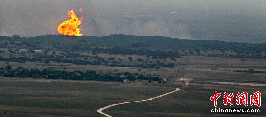 當(dāng)?shù)貢r間6月7日,美國得克薩斯州北部發(fā)生一起天然氣管道爆炸事件。幾名工人在進行挖掘作業(yè)時觸及鋪設(shè)在地下的天然氣管道,引發(fā)爆炸及大火,造成至少一名工人死亡,7人受傷。圖片來源:中國新聞網(wǎng)