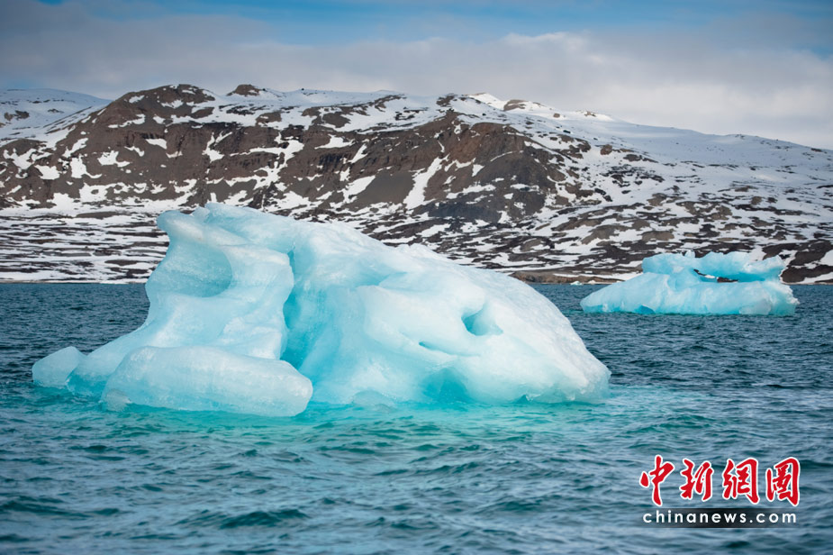 挪威的新奧勒松建有多個(gè)國家的北極考察站。圖為6月5日拍攝的挪威新奧勒松海岸的冰山。