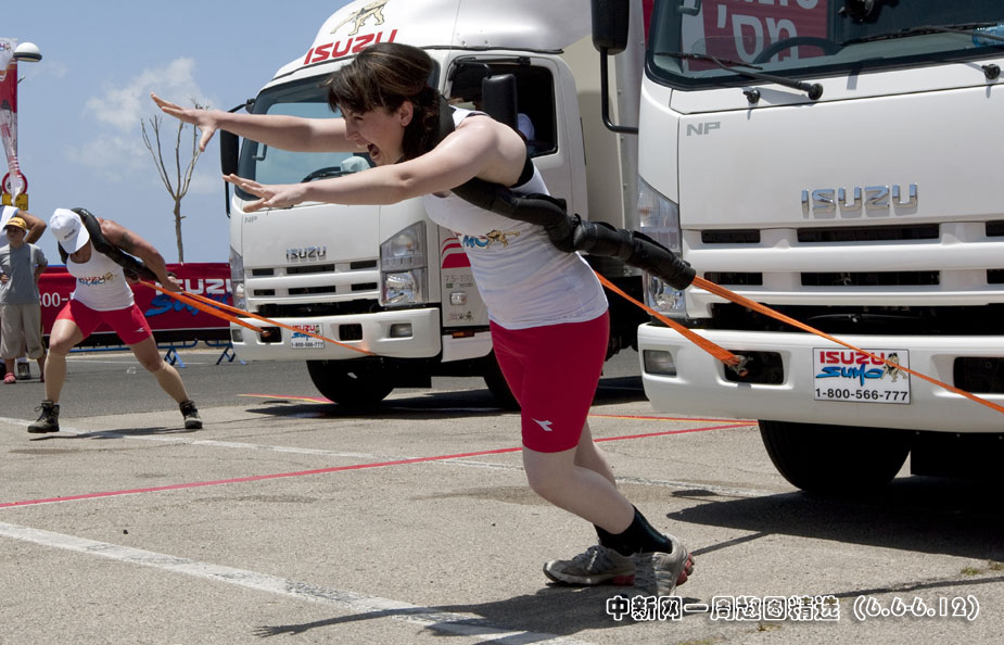 6月8日,以色列在海濱城市特拉維夫舉行了拉卡車大賽。比賽要求將一臺(tái)7.5噸的卡車?yán)?0米以外,用時(shí)最短者為勝者。該項(xiàng)賽事不但吸引了世界上眾多男性大力士,更有許多女性大力士出戰(zhàn)。圖片來源:中國(guó)新聞網(wǎng)>>點(diǎn)擊觀看詳細(xì)內(nèi)容