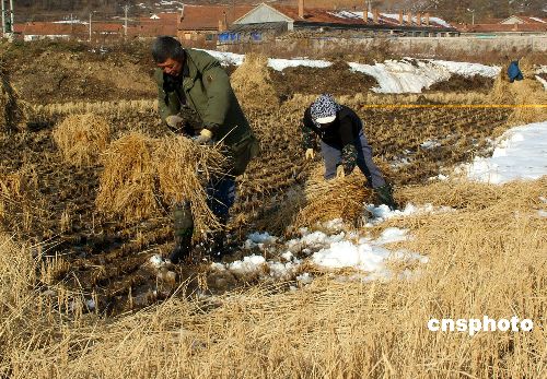 10月22日,黑龍江穆棱市河西鄉(xiāng)三興村農(nóng)民在搶出被大雪覆蓋的水稻田。近日,黑龍江省牡丹江市局部地區(qū)突遭暴雪襲擊。轄區(qū)內(nèi)的綏芬河市、穆棱市、林口縣、東寧縣等東部地區(qū),降雪量達(dá)到了大雪及暴雪的程度,部分地面積雪厚達(dá)1米以上。此次出現(xiàn)的強降雪天氣,給當(dāng)?shù)剞r(nóng)民的秋收工作造成較大影響。暴雪過后,牡丹江市涉農(nóng)部門積極指導(dǎo)農(nóng)民開展抗災(zāi)自救,將農(nóng)業(yè)生產(chǎn)的損失降到最低限度。中新社發(fā) 莊文斌 攝