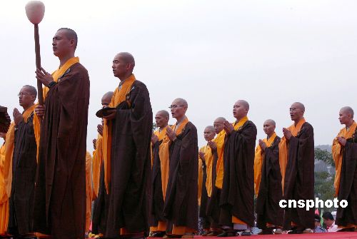 10月30日,中國(莆田)南北少林武術(shù)公演盛會(huì)在莆田南少林寺隆重舉行,圖為福建佛學(xué)院學(xué)生梵唱團(tuán)108位法師表演《和平梵頌》。中新社發(fā) 張勤 攝