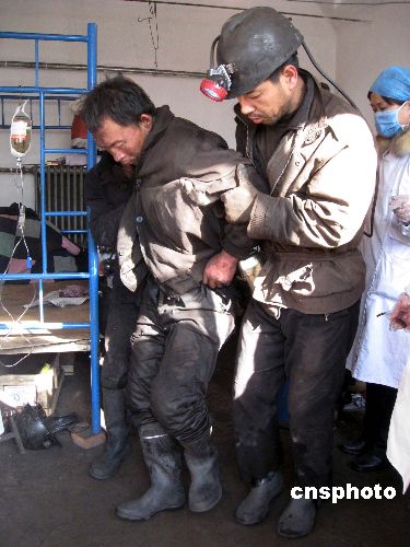 12月6日凌晨零時左右,山西省臨汾市洪洞縣瑞之源煤業(yè)有限公司(位于洪洞縣左木鄉(xiāng)紅光村原新窯煤礦)井下發(fā)生瓦斯爆炸事故,救護隊正在井下緊張搶救,據(jù)初步核查,已有40人遇難,13人被救出后送往醫(yī)院救治,尚有74人被困井下。圖為一名被救出的礦工接受身體檢查。中新社發(fā) 前衛(wèi) 攝