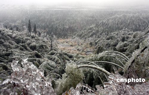 自1月16日以來,受冷空氣南下和低空切變南壓影響,福建龍巖長汀縣持續(xù)低溫陰冷,山區(qū)大范圍出現(xiàn)凍雨和雨夾雪天氣,截至2月2日上午嚴(yán)重冰災(zāi)已造成長汀縣直接經(jīng)濟(jì)損失四點(diǎn)二五億元。目前,該縣仍有六個鄉(xiāng)鎮(zhèn)、五十七個村、二百個自然村尚未恢復(fù)正常供電。中新社發(fā) 黃啟元 攝