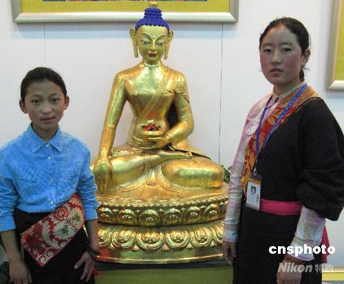 5月6日,在北京中國(guó)國(guó)際貿(mào)易中心舉辦的“2008北京國(guó)際藝術(shù)博覽會(huì)”上,西藏攀德達(dá)杰職業(yè)技術(shù)福利學(xué)校學(xué)生展示了該學(xué)校學(xué)生制作德佛教堂卡、佛像等佛教精美工藝作品。參展單位有:中國(guó)國(guó)內(nèi)外畫(huà)廊、藝術(shù)公司、藝術(shù)院校、畫(huà)院、藝術(shù)團(tuán)體。作品分為:中國(guó)繪畫(huà)、西洋繪畫(huà)、雕塑、書(shū)法、攝影、裝置藝術(shù)等。中新社發(fā) 鄒憲 攝