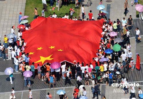 圖:深圳巨幅國旗迎圣火