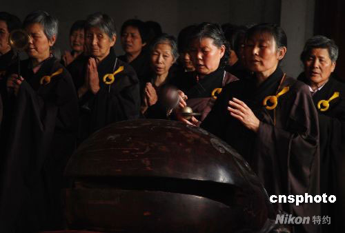 5月15日,江蘇無(wú)錫南禪寺舉行賑災(zāi)祈福吉祥法會(huì)。地震發(fā)生后,中國(guó)國(guó)家宗教局十三日立即向受災(zāi)地區(qū)捐款,同時(shí)向在北京的全國(guó)性宗教團(tuán)體等發(fā)出通知,號(hào)召他們緊急開(kāi)展向地震災(zāi)區(qū)捐款活動(dòng)。中新社發(fā) 楊慧峰 攝