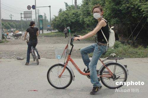 5月16日,四川汶川“五·一二”大地震重災(zāi)區(qū)都江堰,都江堰景區(qū)解說員成為災(zāi)區(qū)志愿者,奔波在街頭尋覓需要幫助者。中新社發(fā) 肖龍聯(lián) 攝
