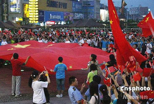 5月16日,湖南長沙市紅十字會、湖南公益聯(lián)盟網共同發(fā)起的“國旗揮舞力量 湖南鼓舞汶川”大型公益活動在長沙市舉行。一面一百平米的國旗在人群中傳遞前行,國旗激起了人們心底的愛國熱情,市民紛紛掏出善款捐獻災區(qū)。中新社發(fā) 張家根 攝