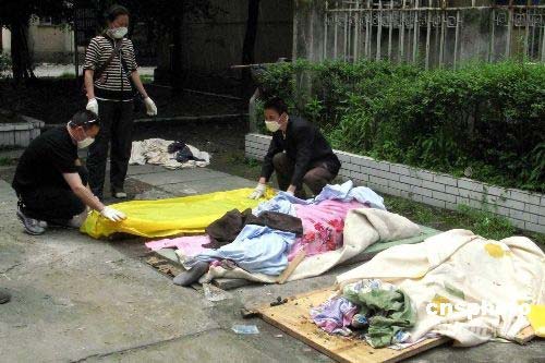 2008年5月16日,四川都江堰市蒲陽(yáng)路附近一個(gè)小區(qū),死者家屬在肅穆氣氛中為死者準(zhǔn)備出殯事宜,死亡者未能避開5月12日中國(guó)汶川大地這場(chǎng)劫難,其遺體剛從地震廢墟中刨出。中新社發(fā) 鄒憲 攝