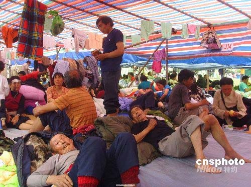 圖:綿陽(yáng)地震災(zāi)民安置點(diǎn)災(zāi)民情緒穩(wěn)定