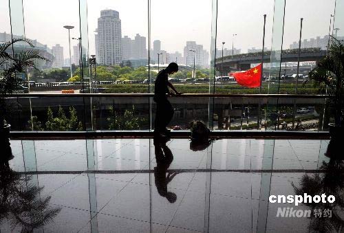 5月19日,上海徐匯區(qū)一所建筑內(nèi),一名青年面對窗外降半旗的國旗沉思。為表達(dá)各族人民對四川汶川大地震遇難同胞的深切哀悼,中國政府決定,2008年5月19日至21日為全國哀悼日。在此期間,全國和各駐外機(jī)構(gòu)下半旗志哀,停止公共娛樂活動,外交部和中國駐外使領(lǐng)館設(shè)立吊唁簿。5月19日14時28分起,全國人民默哀3分鐘,屆時汽車、火車、艦船鳴笛,防空警報鳴響。中新社發(fā) 廖攀 攝