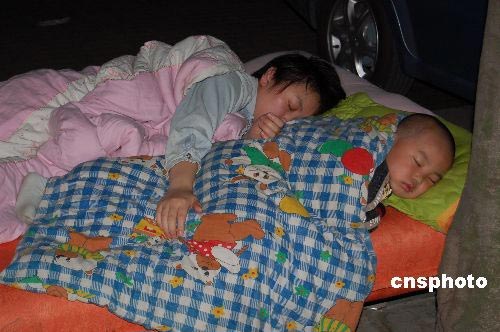 5月20日凌晨,四川成都眾多市民紛紛露宿街頭防止余震傷害。四川省地震局19日晚發(fā)出公告稱(chēng),汶川余震活動(dòng)水平為6—7級(jí)左右,5月19日至20日汶川地震區(qū)附近余震發(fā)生的可能性較大。中新社發(fā) 劉萬(wàn)強(qiáng) 攝