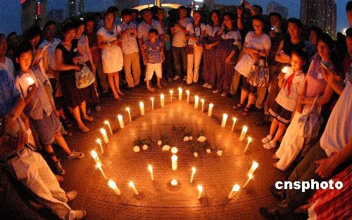 5月19日晚,新疆巴音郭楞蒙古自治州(簡(jiǎn)稱巴州)團(tuán)委在新疆庫(kù)爾勒市人民廣場(chǎng)舉辦共青團(tuán)員“點(diǎn)燃蠟燭、寄托對(duì)汶川大地震遇難同胞的哀思”活動(dòng),為汶川地震遇難同胞默哀。中新社發(fā) 確·胡熱 攝
