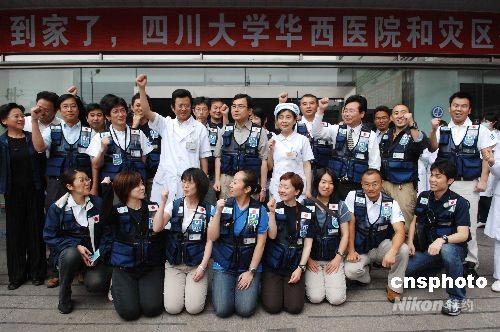 圖:日本國際醫(yī)療救援隊抵成都
