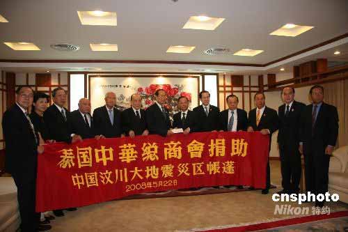 中國汶川大地震的災情一直令泰國華人華僑關心,災情發(fā)生以來,僑界捐款源源不斷。泰國中華總商會5月22日向地震災區(qū)捐助兩千多套帳篷,成為泰國社會捐助地震災區(qū)的第一批物資。這些帳篷將在近日通過中國駐泰大使館轉運災區(qū)。中新社發(fā) 顧時宏 攝