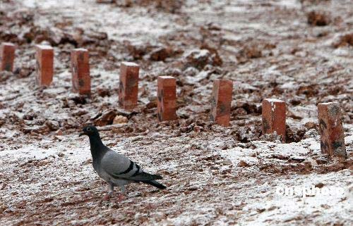 5月22日上午,一只灰鴿從遠(yuǎn)處飛來(lái),落在四川省什邡市洛水鎮(zhèn)李冰村西北的山坡上,這里埋葬了108名“5.12”地震遇難者,他們的墓碑用磚代替,墓碑上沒(méi)有名字,上面只有一個(gè)數(shù)字編號(hào)。 灰鴿久久佇立在這片灑滿(mǎn)石灰粉的墓地,良久后,它沿著第二排磚碑向南緩緩踱去,頭頸轉(zhuǎn)向墓碑……走到盡頭,然后它又側(cè)身轉(zhuǎn)向第一排磚碑,良久……當(dāng)記者慢慢地輕輕接近它時(shí),它并沒(méi)有飛起,微微地昂起頭,少頃,“咕咕”地叫幾聲,回望了一眼墓地,飛走了……中新社發(fā) 張曉理 攝
