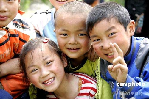 圖:汶川綿池鎮(zhèn)災(zāi)區(qū)兒童露笑臉