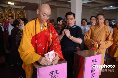 圖:福州佛教僧眾為地震災區(qū)同胞捐款祈福