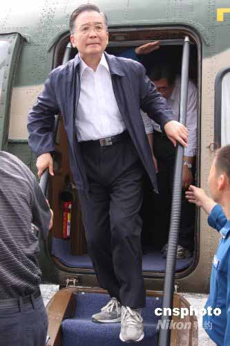 圖:溫家寶飛抵汶川大地震重災(zāi)區(qū)映秀鎮(zhèn)