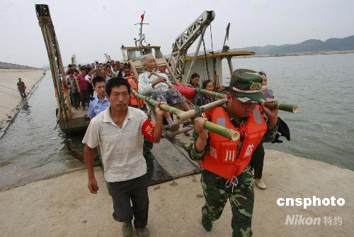 5月30日,四川省遂寧市武警支隊戰(zhàn)士幫助轉(zhuǎn)移船山區(qū)小河洲群眾。當天下午,船山區(qū)政府緊張有序組織小河洲村民緊急撤離預演。由于涪江支流湔江上游唐家山堰塞湖面臨潰堤危險,處于涪江中游的該市各級各部門及時啟動應(yīng)急預案,并開展有序的撤離預演,確保唐家山堰塞湖潰堤遂寧市零傷亡。中新社發(fā) 鐘 敏 攝