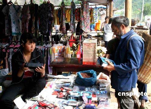 6月8日,濟(jì)南軍區(qū)某裝甲團(tuán)官兵在綿陽市平武縣平通鎮(zhèn)設(shè)立了第一家農(nóng)村集貿(mào)市場,幫助受災(zāi)群眾自力更生。這個市場占地300多平方米,有17個小攤營業(yè),出售各種時令果蔬、肉類、衣服鞋襪以及收音機(jī)、手電筒等日用小家電。商品除了當(dāng)?shù)厣a(chǎn)外,主要從江油市采購,價格比地震前低10%左右。中新社發(fā) 畢華明 攝