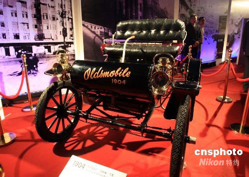 9月16日晚,通用汽車百年華誕慶典晚會(huì)在上海舉行,多款古董汽車在紅地毯上亮相,讓上海人目睹了通用汽車的經(jīng)典歷程。圖為1904年出產(chǎn)的奧茲莫比爾汽車,是世界上第一款大批量生產(chǎn)的汽車。中新社發(fā) 潘索菲 攝